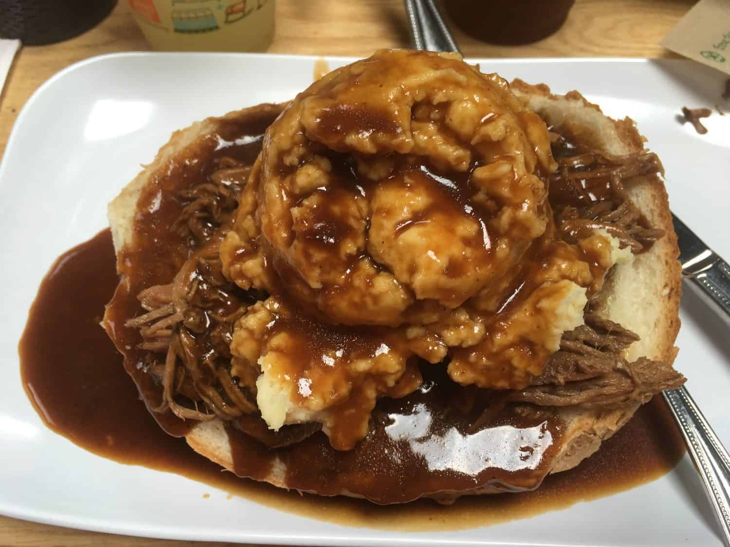 My favorite meal at Taste of History is the Beef Bread Bowl which is filled with gravy, and beef, and topped with mashed potatoes and more gravy. My husband had a Pulled Pork sandwich and my daughter had Macaroni and Cheese. Our portions were huge and could have been shared! My husband gave our daughter some pork from his sandwich to top her Mac & Cheese. My only complaint is that none of our meals came with fruits or vegetables. We ordered two sides of green beans to share between the 3 of us. I was quite impressed with the beans. They were not overcooked, lightly coated in butter, and quite tasty. They also offer Hobo Lunches for kids – either hot dogs or PB&J.